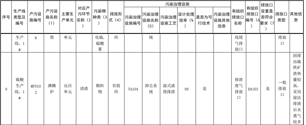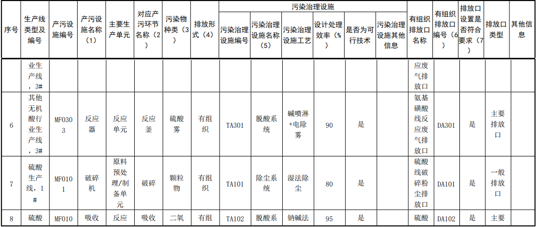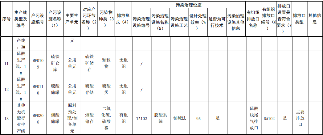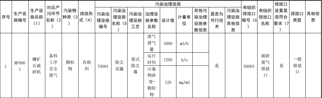 廢氣產(chǎn)排污節(jié)點(diǎn)、污染物及污染治理設(shè)施信息表