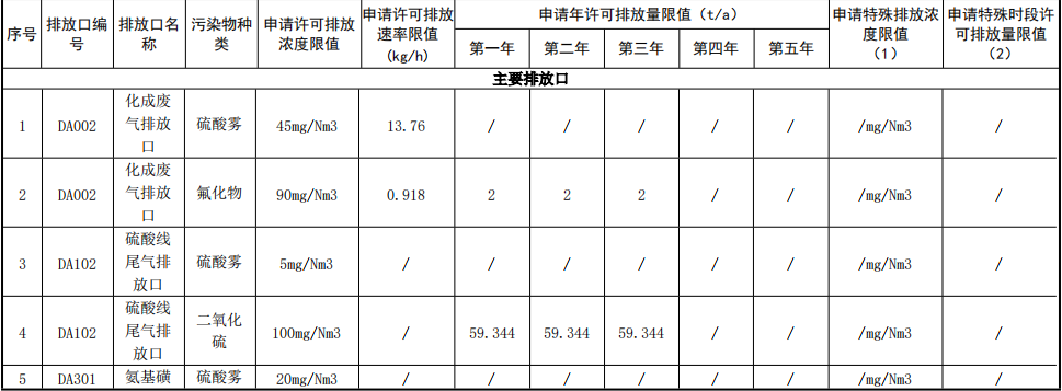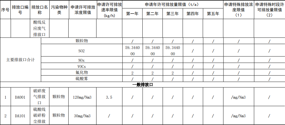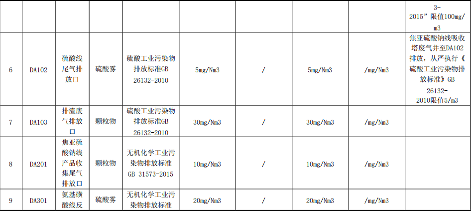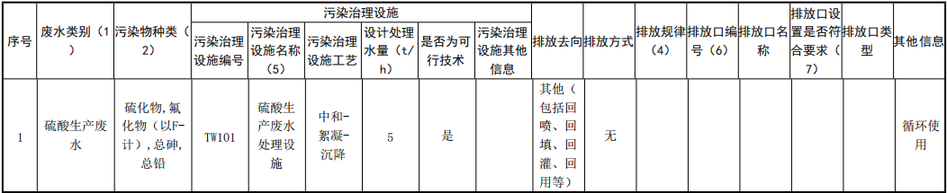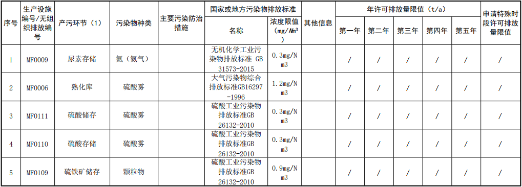 湖北龍祥磷化有限公司環(huán)境信息公示 湖北龍祥磷化有限公司,現(xiàn)有10萬(wàn)噸/年過(guò)磷酸鈣生產(chǎn)線、20萬(wàn)噸硫鐵礦制酸生產(chǎn)線、2萬(wàn)噸/年氨基磺酸生產(chǎn)線(試生產(chǎn)階段)各一條(焦亞硫酸鈉生產(chǎn)線建成未生產(chǎn)),公司統(tǒng)一社會(huì)信用代碼:91420684726129188X,排污許可證編號(hào):91420684726129188X001Q,公司2022年主要污染物為:顆粒物、二氧化硫、其他特種污染物(硫酸霧、氟化物,氨(氨氣))、COD、氨氮其他特征污染物(硫化物,氟化物(以F-計(jì)),總砷,總鉛,總氮(以N計(jì)),總磷以(以P計(jì)),PH值,懸浮物)。公司自建成以來(lái)秉承著環(huán)保大于一切的理念,嚴(yán)格遵守國(guó)家相關(guān)法律法規(guī),主動(dòng)增強(qiáng)、改善相關(guān)環(huán)保治理與預(yù)防設(shè)施,未發(fā)生超標(biāo)排放情況?,F(xiàn)將公司主要污染物的名稱、排放方式、排放濃度和總量,以及防治污染設(shè)施的建設(shè)和運(yùn)行情況,危廢相關(guān)信息公示如下: