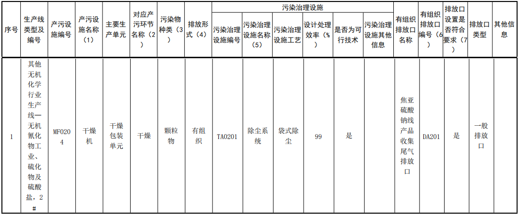 廢氣產(chǎn)排污節(jié)點(diǎn)、污染物及污染治理設(shè)施信息表